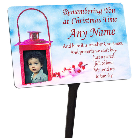 Personalised Christmas Memorial Plaque Stake Your Photo. Lantern.