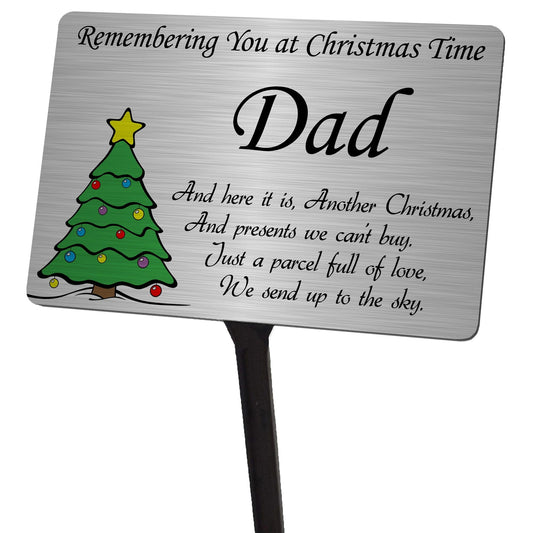 Christmas Tree Memorial Plaque & Stake for Dad. Brushed Silver