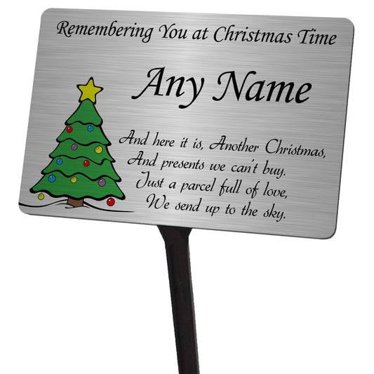 Personalised Christmas Tree Memorial Plaque & Stake Brushed Silver