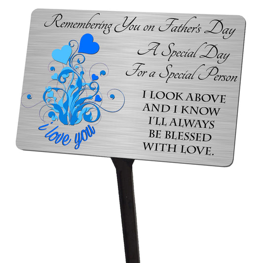 Fathers Day Memorial Plaque & Stake. Brushed Silver Waterproof garden grave