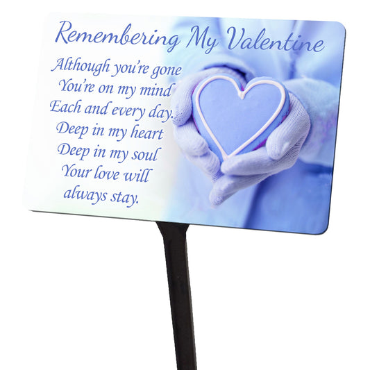 Valentines Day Memorial Plaque & Stake. Blue With UV Protection.