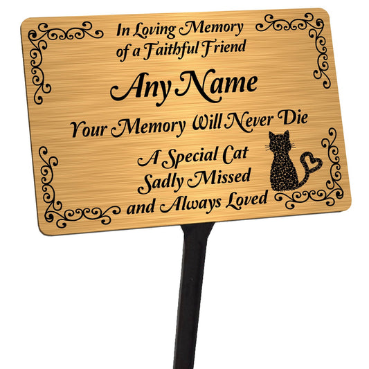 Personalised Cat Memorial Plaque & Stake. Brushed Silver or Gold