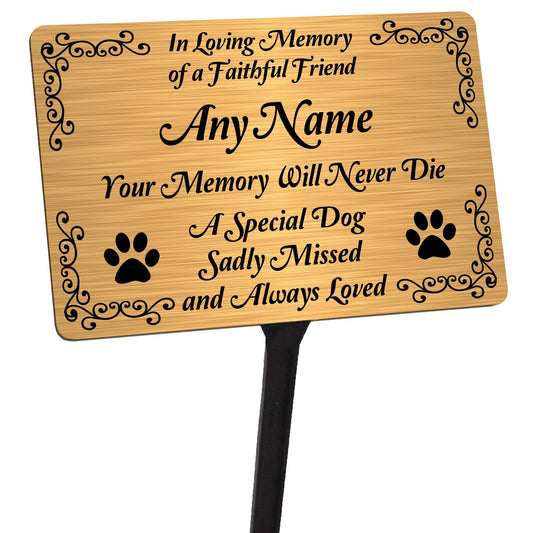 Personalised Dog Memorial Plaque Brushed Silver or Gold