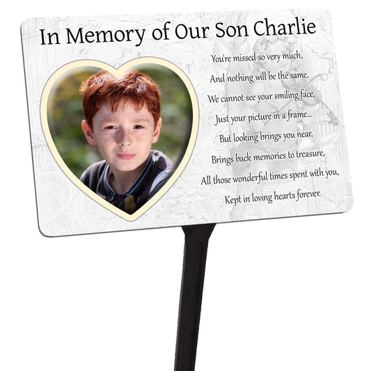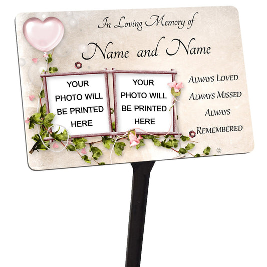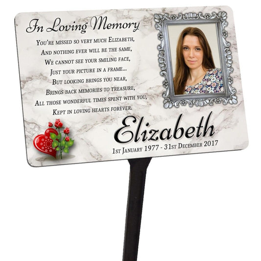 Your Photo Personalised Memorial Plaque & Stake. Heart